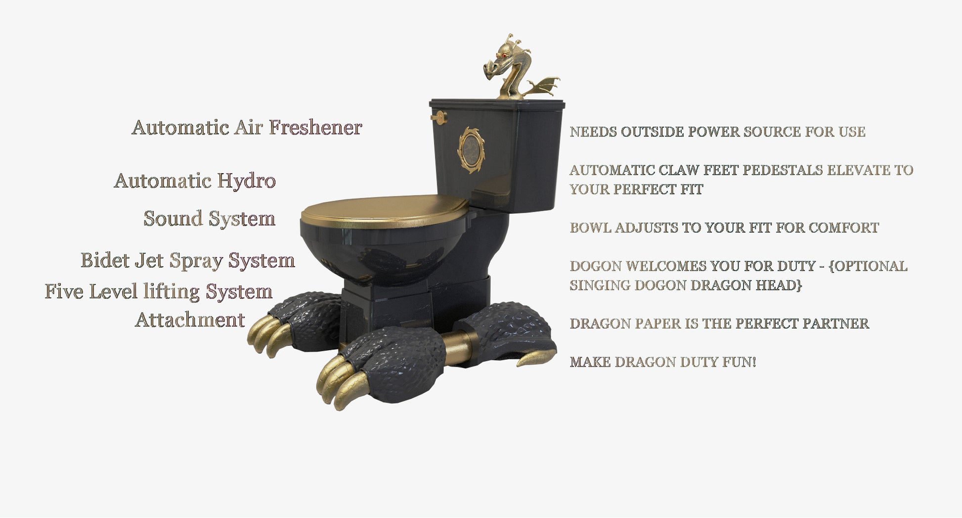 Dogon’s claw feet elevate to the perfect height to make your visit comfy and complete. You have the option of bringing a singing dogon head to your tank to start your day in a musical way!
