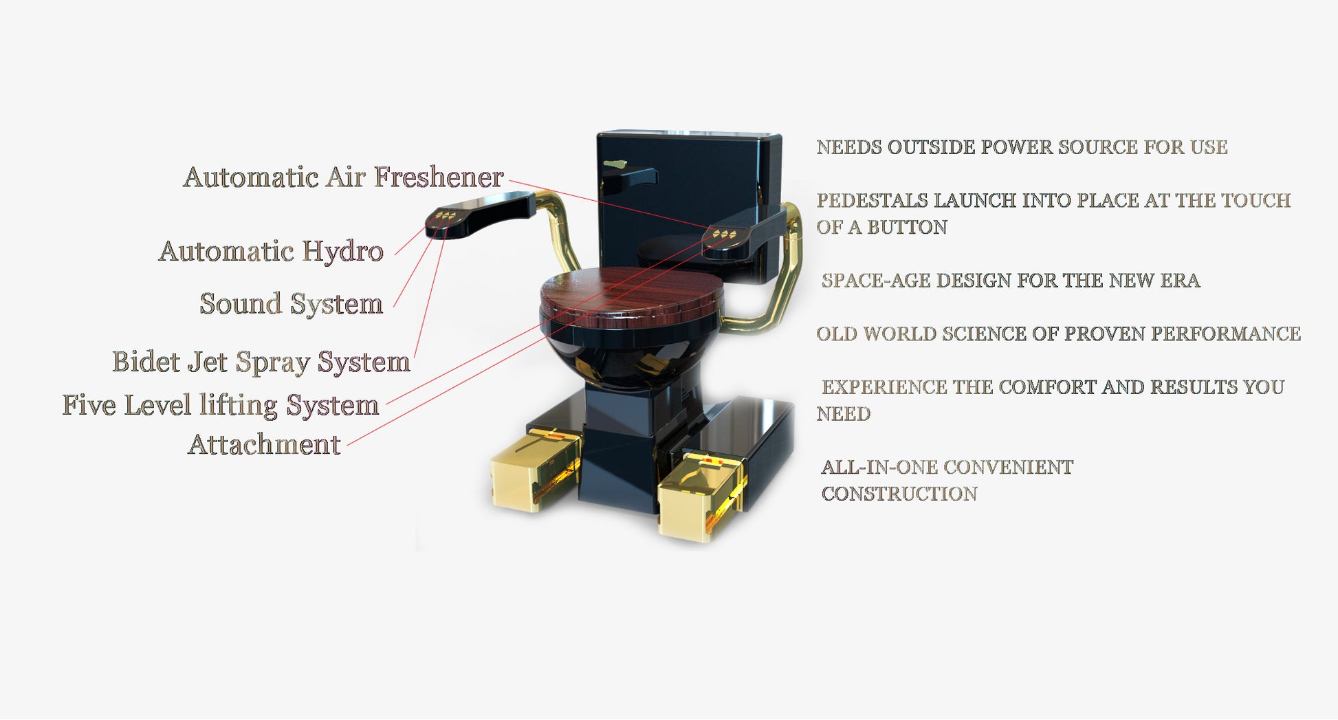 Our toilets elevate the feet of people off of the floor to re-create the “Squatting” posture WHICH HAS BEEN THE MOST EFFICIENT POSTURE FOR THE SPINE SINCE THE BEGINNING OF TIME – Once you experience the difference this makes you will not settle for less. Our toilets not only come equipped from the factory with pedestals to elevate the feet – the pedestals adjust to {5} different levels to arrive at the most comfortable and efficient position for your posture. In addition, the toilet bowls as well also adjust to different levels to satisfy the most demanding of bodily functions – for your comfort.